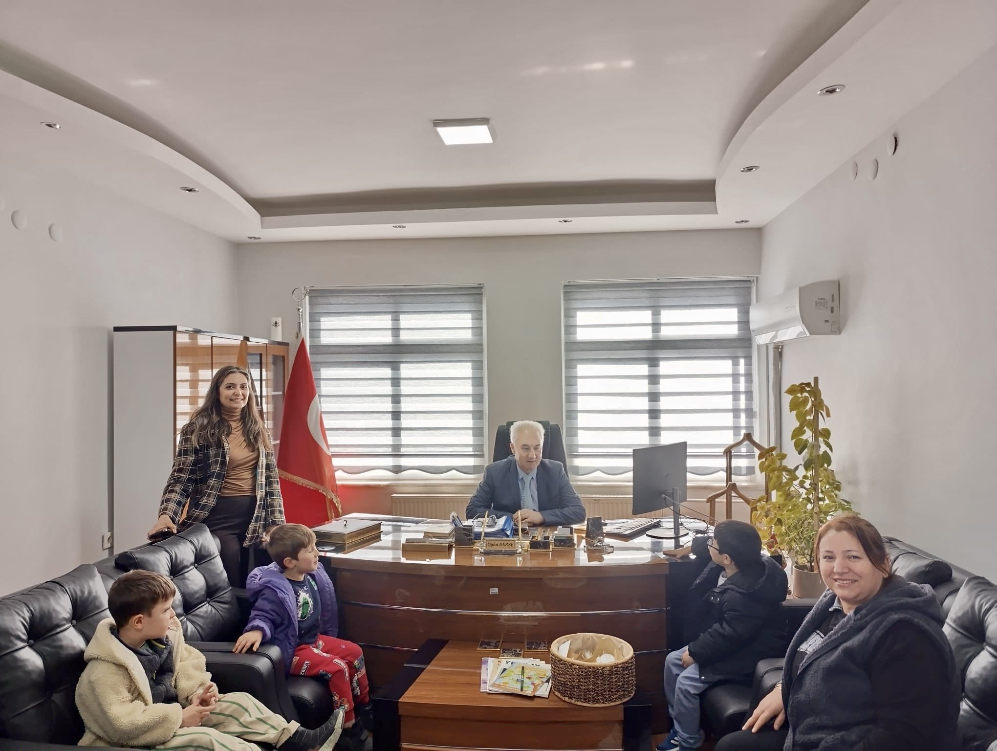 Minik Dahiler Anaokulu öğrencileri, Kemalpaşa İlçe Milli Eğitim Müdürü Ogün Derse’yi makamında ziyaret etti.