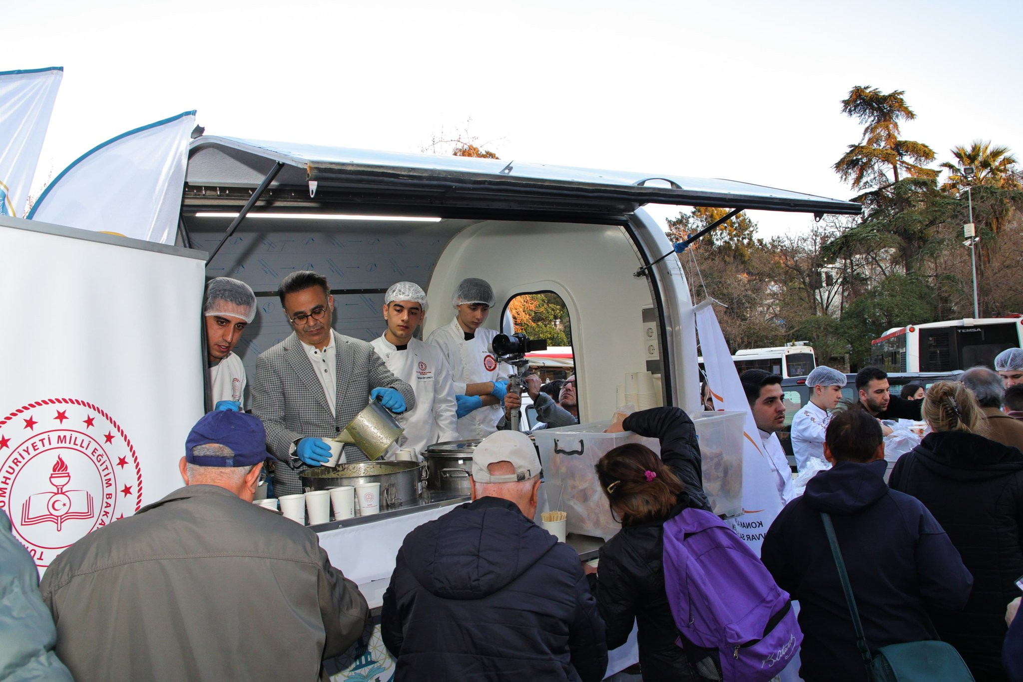 İzmir İl Millî Eğitim Müdürü Ömer Yahşi, meslek lisesi öğrencilerinin hazırladığı 1000 kişilik iftarı Konak Meydanı’nda vatandaşlara dağıttı.