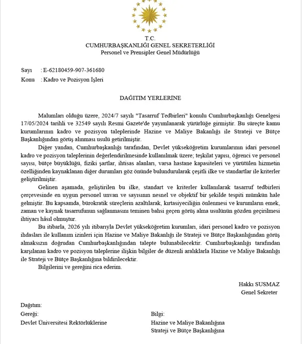 Daha önce, 2024/7 sayılı Tasarruf Tedbirleri çerçevesinde, devlet üniversitelerinin kadro ihdas ve izin işlemleri öncesinde Hazine ve Maliye Bakanlığı ile Strateji ve Bütçe Başkanlığı'ndan izin almak zorunlu hale getirilmişti. Bu süreç, bürokratik engellerin artmasına ve işlemlerin uzamasına neden olmuştu.