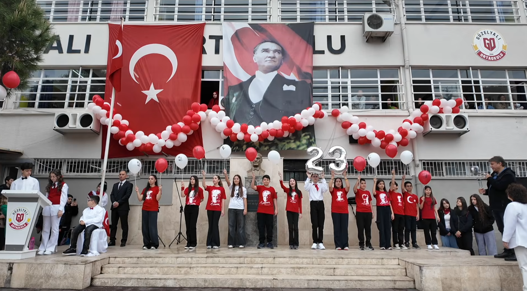 Konak Güzelyalı Ortaokulu, 23 Nisan'ı muhteşem bir törenle kutladı. Okulun birlik mesajı ve disiplini büyük takdir topladı.