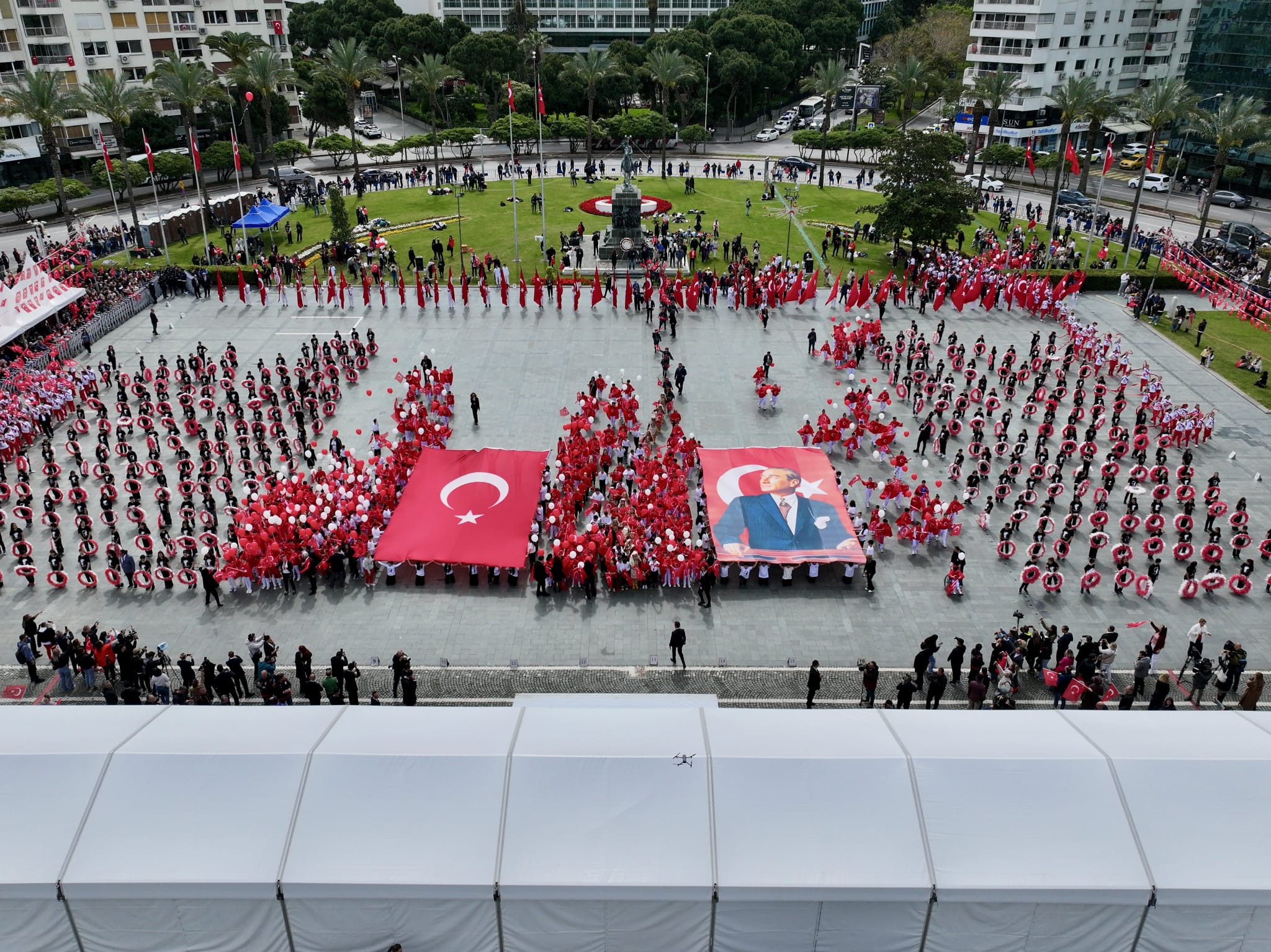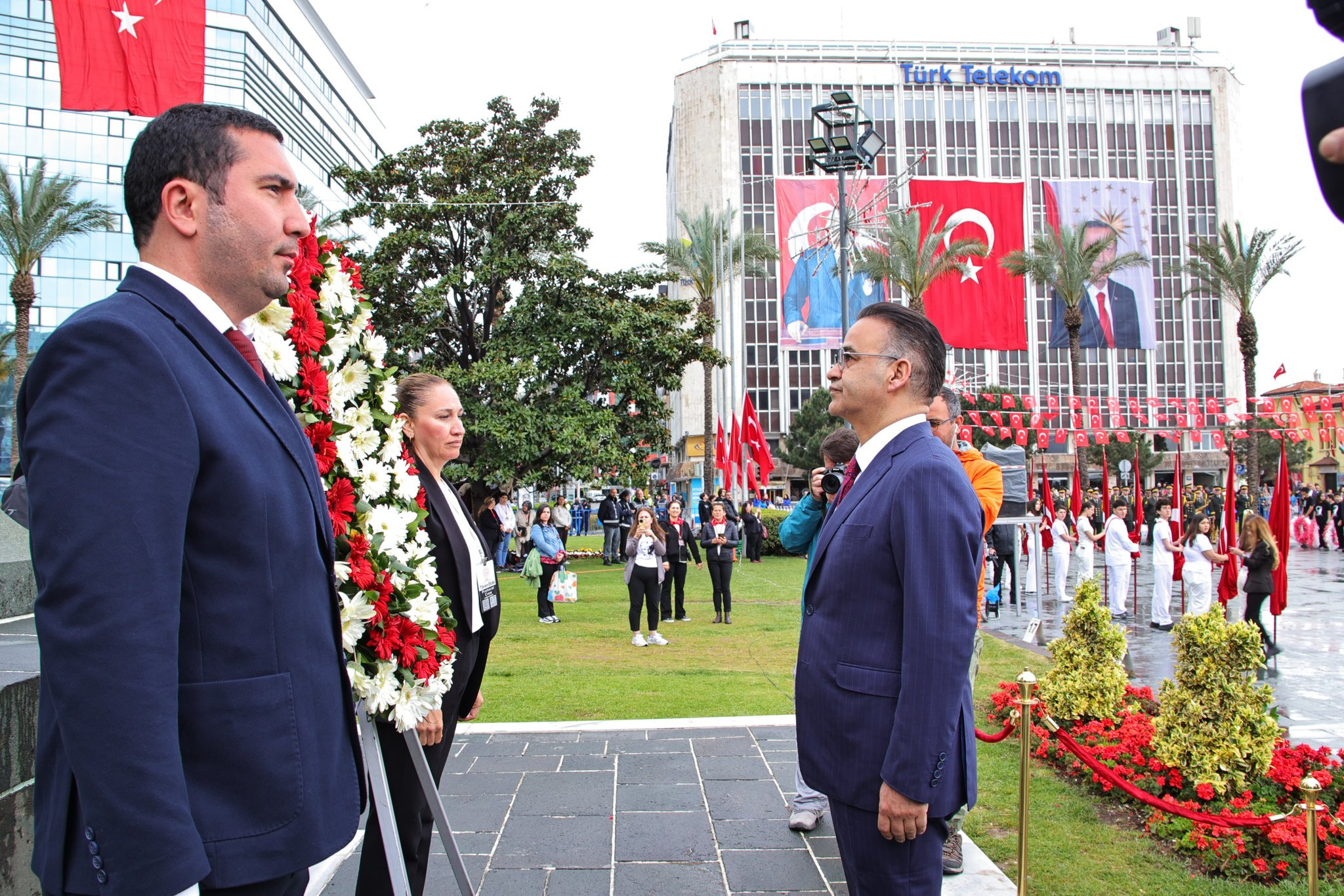 İzmir halkının ve çocukların yoğun katılım gösterdiği kutlamalar, sabah saatlerinde düzenlenen resmi törenle başladı. İzmir İl Millî Eğitim Müdürü Dr. Ömer Yahşi, Cumhuriyet Meydanı’ndaki Atatürk Anıtı’na çelenk sunarak törenin açılışını gerçekleştirdi. Saygı duruşu ve İstiklal Marşı’nın okunmasının ardından bayram coşkusu tüm meydana yayıldı.