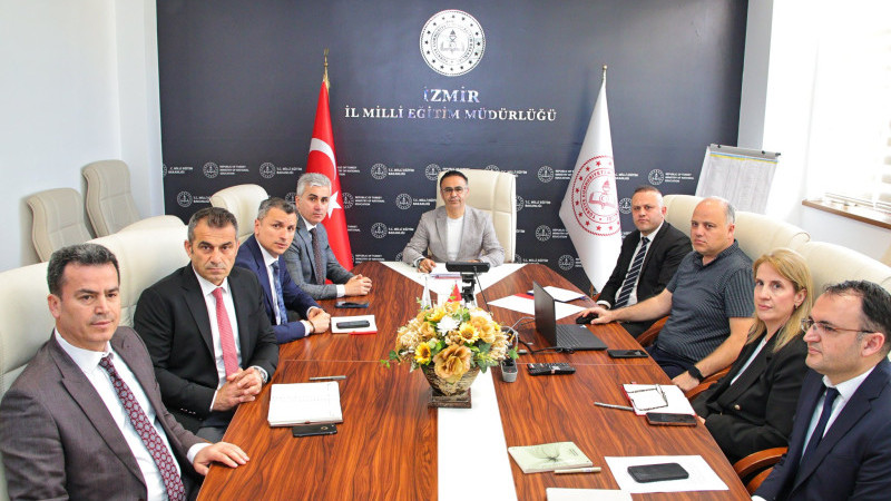 İzmir İl Millî Eğitim Müdürü Dr. Ömer Yahşi başkanlığında okul güvenliği, yatırımlar, 23 Nisan ve bursluluk sınavı gündemiyle toplantı yapıldı.