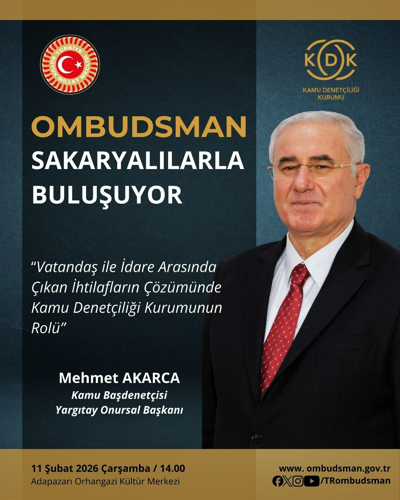“Ombudsman Sakaryalılarla Buluşuyor” programı, bu uzun soluklu yolculuğun yeni durağı. Amaç yine aynı, “devleti anlatmak, idareyi sadeleştirmek, vatandaşın hakkını görünür kılmak.” Her şehirde farklı bir başlık, her salonda aynı kararlılık… Kamu hizmetlerinin ortak bir hak olduğu bilinci, Akarca’nın cümlelerinde yeniden hayat buluyor.